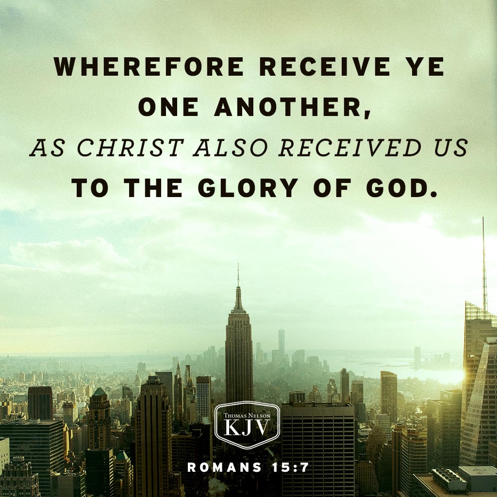 Romans 15:1–7 concludes Paul's teaching on how Christians with strong faith, those who understand their freedom from the law, should live with those of weaker faith. All Christians must please each other and not themselves. After all, Christ didn't come to please Himself. With God's help and encouragement, everyone in the church can live together in harmony and glorify God with one, unified voice, as they serve each other ahead of themselves. They must welcome each other as Christ has welcomed them. Bibleref.com
